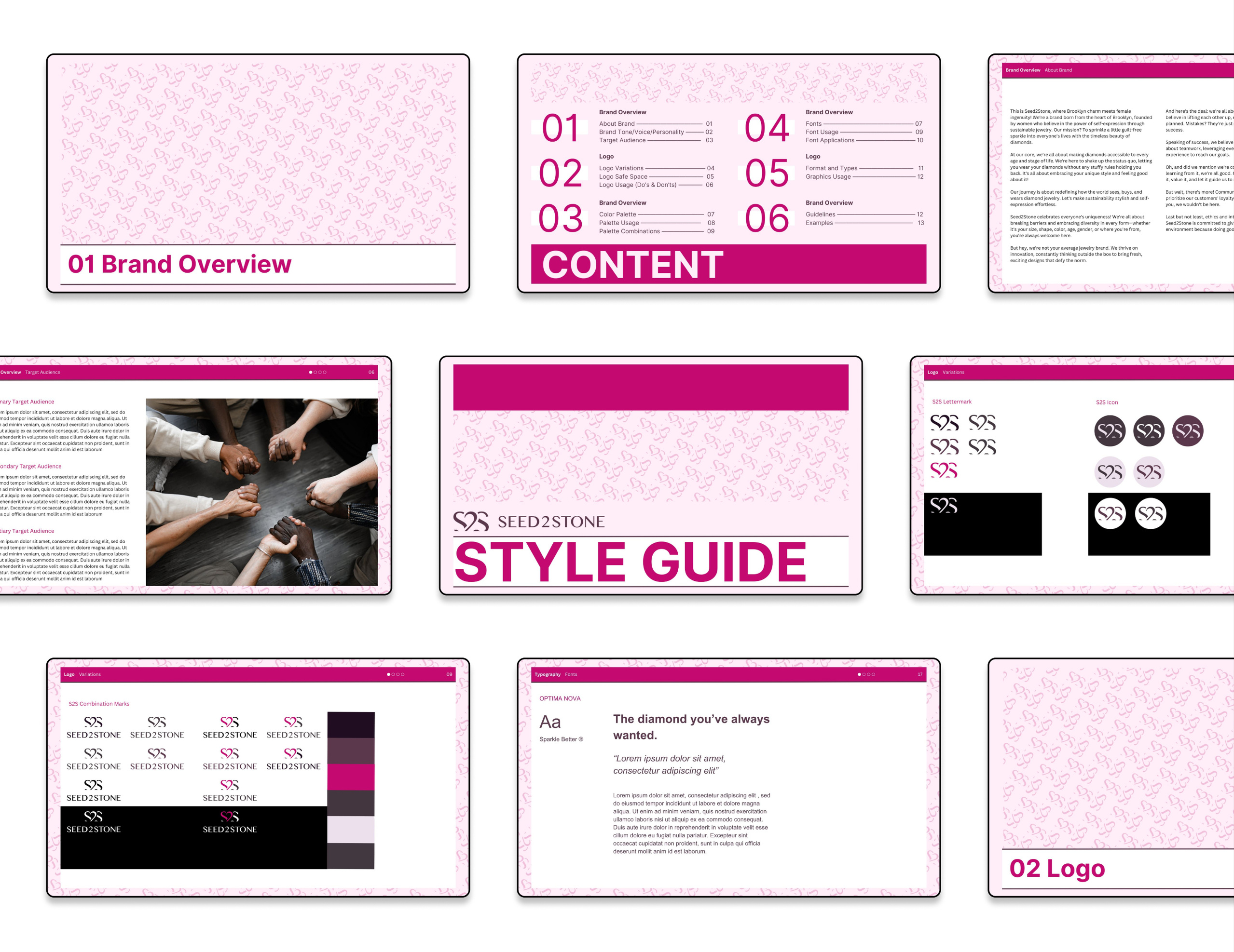Before diving into the templates, Seed2Stone provided me with their brand pitch deck, consumer personas, ideal customer profile, and logo and typography suite.Using these as references, I conducted a thorough brand analysis. After taking notes, I developed a tailored project deliverable, cross-referencing insights from a previous brand project guide. Following a collaborative meeting to propose the structure for the brand book and style guide, I began crafting the Seed2Stone Identity book